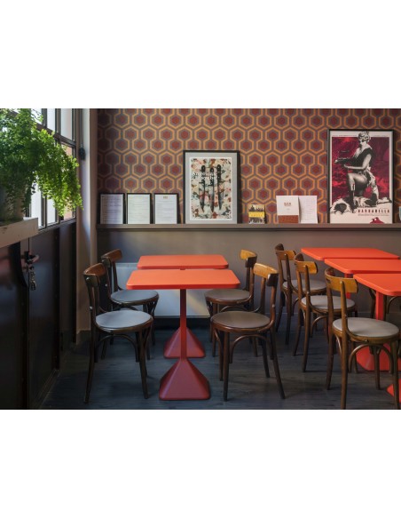 Το τραπέζι TNP δημιουργήθηκε για πρώτη φορά από τον Christophe Pillet για το Théâtre National Populaire, ένα κτίριο που χρονολογείται από τη δεκαετία του 1930 και στεγάζει ένα από τα πιο διάσημα πολιτιστικά ιδρύματα της Γαλλίας, το οποίο ιδρύθηκε για να προσφέρει στο ευρύ κοινό ποιοτικές θεατρικές παραστάσεις. Εμπνεύστηκε από τα μικρά τραπέζια των παλιών bistrots στο Παρίσι: η βάση είναι κατασκευασμένη από χυτοσίδηρο, ένα παραδοσιακό υλικό που χρησιμοποιείται για αμέτρητα αντικείμενα στη γαλλική μητρόπολη, από τις λάμπες του δρόμου μέχρι τις πινακίδες του μετρό. Προσαρμοσμένη με το λογότυπο του θεάτρου, η βάση στηρίζει ένα τετράγωνο ή ορθογώνιο καπάκι. Το τραπέζι διατίθεται σε τέσσερα χρώματα: λευκό, μαύρο, πράσινο της ελιάς και καφέ τερακότα.