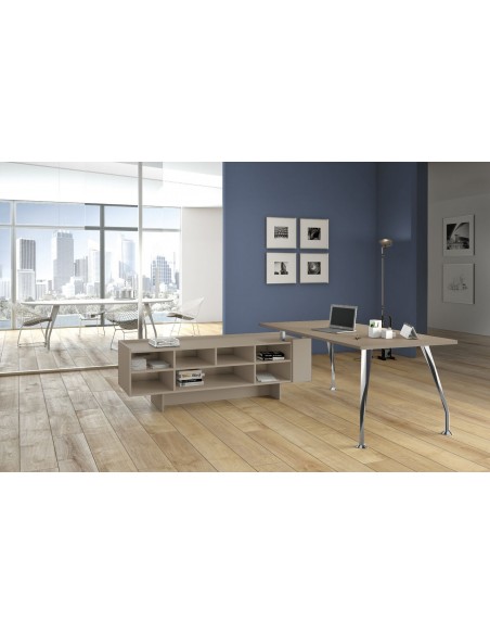 Βασικό χαρακτηριστικό του γραφείου Square είναι η λιτή γραμμή του. Χαλύβδινη βάση σε σχήμα πλαίσιο με διατομή 5x3cm. Η μεταλλική τραβέρσα κατά μήκος της επιφάνειας εργασίας, πλάτους 15cm προσφέρει απόλυτη σταθερότητα ενώ παράλληλα σας δίνει τη δυνατότητα να τακτοποιήσετε και να αποκρύψετε μέσα όλα σας τα καλώδια. Τα πόδια του διατίθενται σε λευκό ή μαύρο...